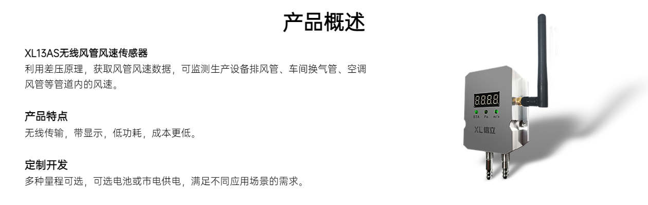 XL13AS無(wú)線風(fēng)管風(fēng)速傳感器