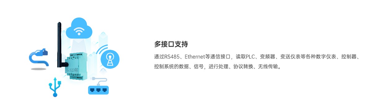 工業(yè)儀表、控制器聯(lián)網(wǎng):讀取PLC等各類控制器、工控儀表的數(shù)據(jù),轉(zhuǎn)無線通信或聯(lián)網(wǎng),并可同時(shí)向多個主站、平臺,發(fā)送數(shù)據(jù)。