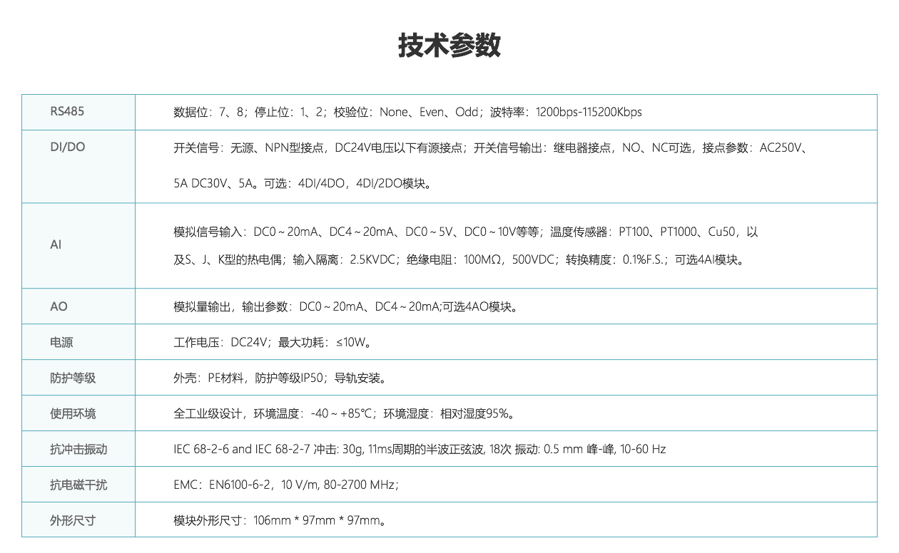 I/O模塊可獨立使用,支持RS485和標(biāo)準的Modbus RTU通信協(xié)議輸出數(shù)據(jù)。