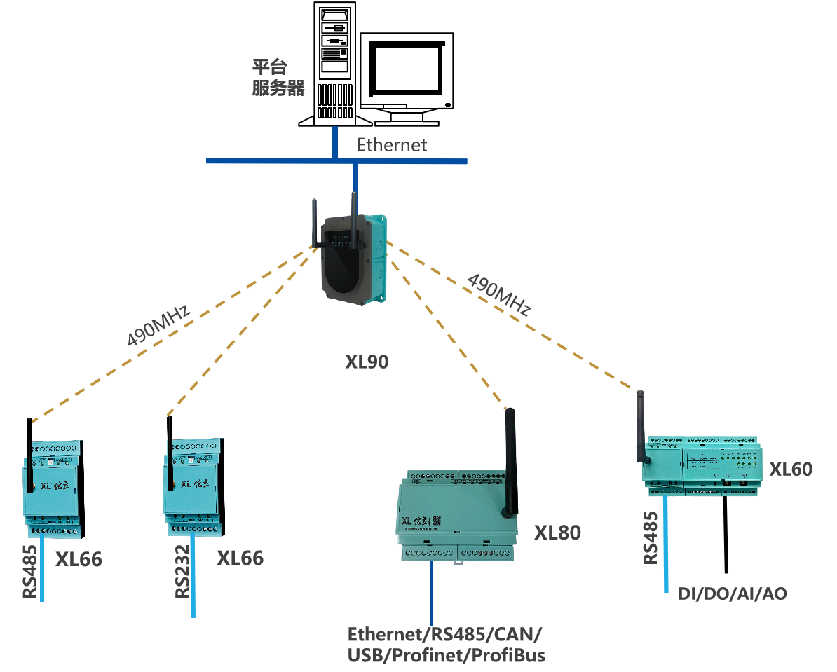 XL80智能主機, Ethernet、CAN、USB、Profibus、 Profinet、RS485等接口,讀取數據,LoRa通信(490MHz)