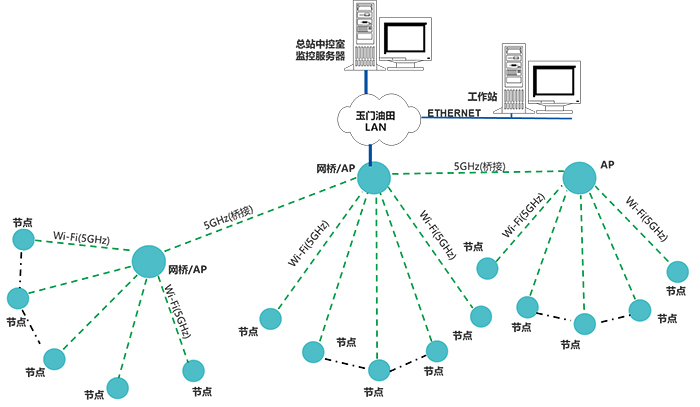 本項(xiàng)目技術(shù)方案的無(wú)線數(shù)據(jù)傳輸方式,選用LoRa、Wi-Fi、4G等物聯(lián)網(wǎng)傳輸技術(shù)結(jié)合的方案,以解決老君廟站點(diǎn)儲(chǔ)罐液位及集輸管線壓力傳輸在復(fù)雜地理環(huán)境下對(duì)無(wú)線傳輸?shù)募夹g(shù)要求。并預(yù)留有擴(kuò)展接口(以太網(wǎng),及4G),及油氣生產(chǎn)物聯(lián)網(wǎng)(A11)協(xié)議,接入后續(xù)企業(yè)構(gòu)建的大數(shù)據(jù)服務(wù)器。