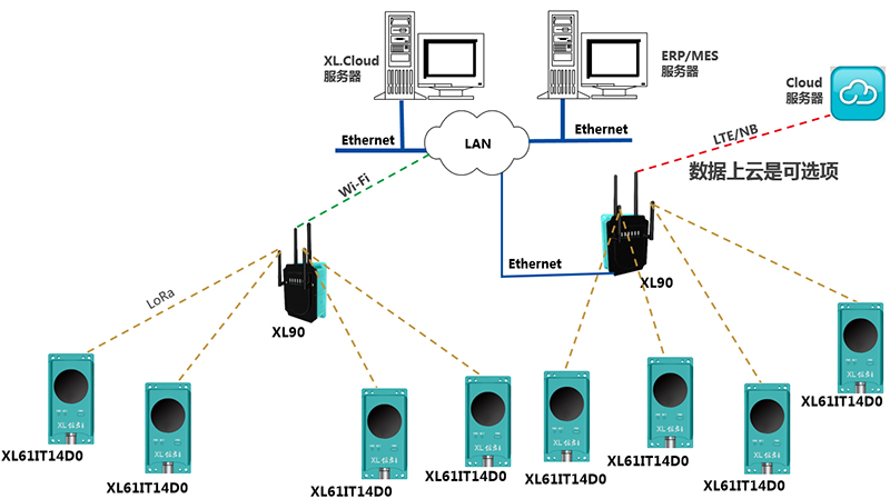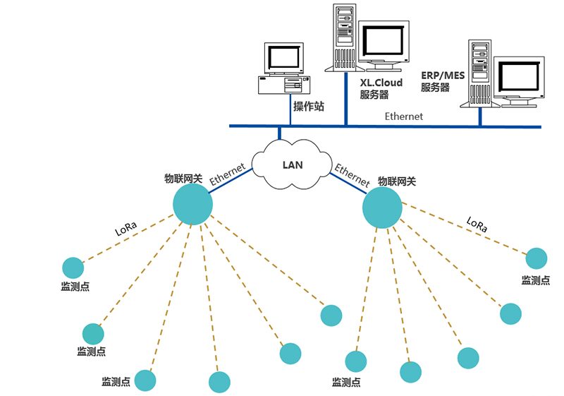 通信網(wǎng)絡(luò)設(shè)計(jì):在每個(gè)配電室,或是監(jiān)測(cè)點(diǎn)較集中的區(qū)域,安裝XL90物聯(lián)網(wǎng)關(guān):