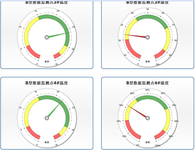 可在線實時24小時連續(xù)采集和記錄監(jiān)測點位的溫度、濕度、壓差等各項參數(shù)情況,以布局、仿真、曲線、表格等四種視圖顯示監(jiān)測結(jié)果,方便用戶觀測,監(jiān)測點位可擴充多達(dá)上千個點;