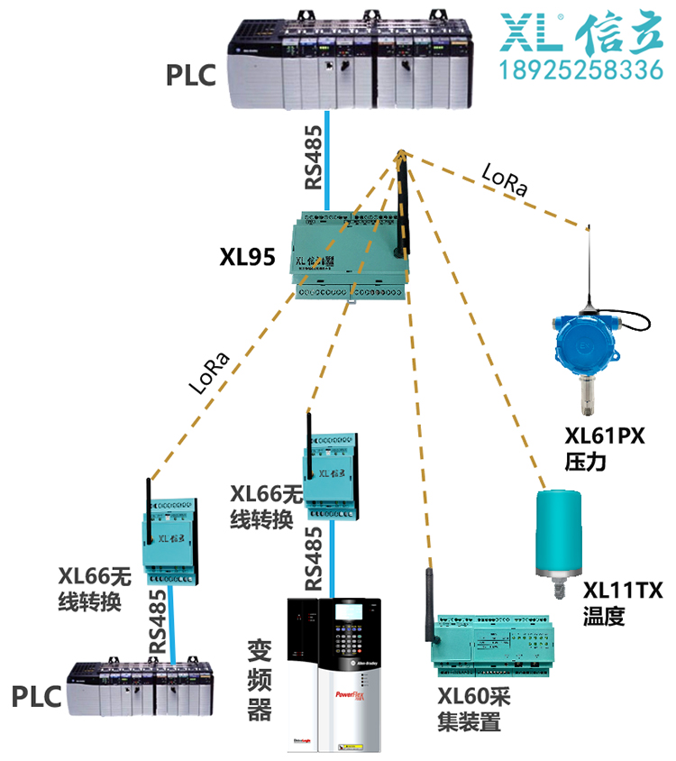 XL9X網(wǎng)關(guān),無線讀取采集節(jié)點的數(shù)據(jù),通過RS485,Ethernet轉(zhuǎn)發(fā)數(shù)據(jù)至PLC;