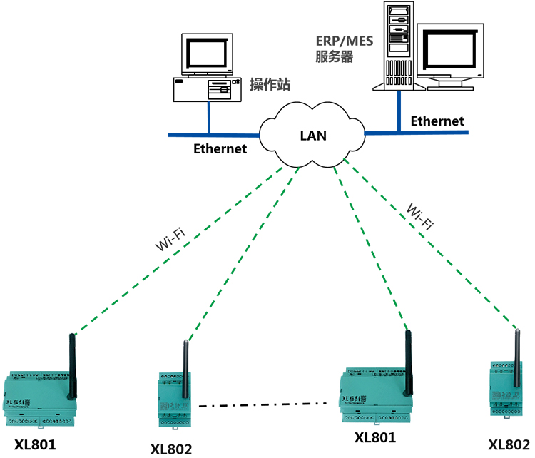 XL80X選擇Wi-Fi通信方式,適用于工廠車間內(nèi)的數(shù)據(jù)采集和無(wú)線傳輸,且有局域網(wǎng)Wi-Fi覆蓋的區(qū)域。