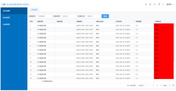 首頁實(shí)時(shí)顯示處于報(bào)警狀態(tài)的設(shè)備,設(shè)備當(dāng)前狀態(tài)、位置一目了然,管理人員根據(jù)監(jiān)測數(shù)據(jù)及時(shí)作出應(yīng)對處理,避免安全事故的發(fā)生。