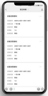 報(bào)警信息通過微信公眾號推送給管理人員,隨時(shí)隨地掌握現(xiàn)場設(shè)備動(dòng)態(tài),無需通訊費(fèi)用,更省成本。