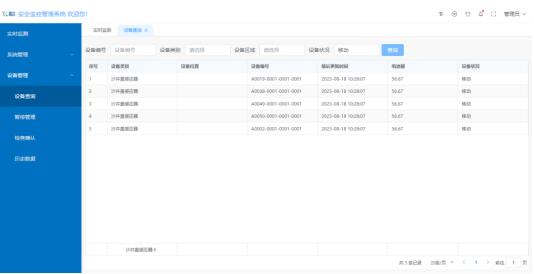 可根據(jù)設(shè)備編號、類別、區(qū)域、狀態(tài)等條件,篩選查詢需要查看的設(shè)備信息;
