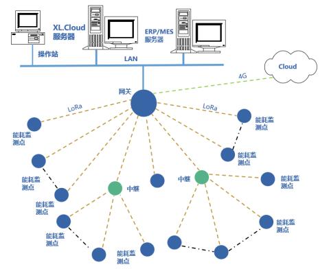 DTSD3366XX/XL無線多功能電能表獲取數(shù)據(jù),通過LoRa無線傳輸方式上傳至XL90網(wǎng)關(guān);XL90網(wǎng)關(guān)計(jì)算分析讀取的能耗數(shù)據(jù),并通過Ethernet、Wi-Fi、4G等通信方式,將數(shù)據(jù)上傳至XLSCADA平臺。