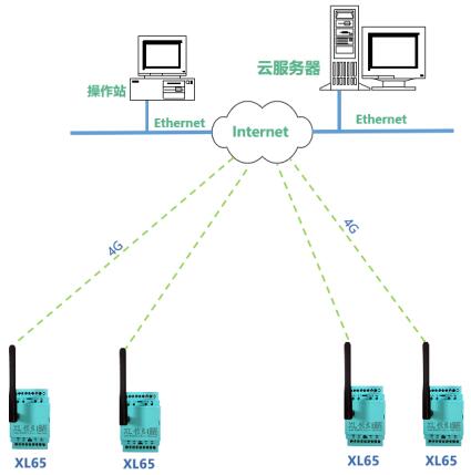 考慮到水下監(jiān)測(cè)的信號(hào)問題,溫度變送器選擇防水電纜通過RS485通信方式將數(shù)據(jù)傳輸?shù)?/span>XL65無線采集器;由于戶外偏遠(yuǎn),XL65無線采集器采用4G通信,不受距離限制,將數(shù)據(jù)直接上傳至云平臺(tái)。