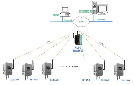 XL13AD無線大氣壓差傳感器采用LoRa無線通信模塊,將采集到的壓差數(shù)據(jù)無線傳輸至XL90網(wǎng)關(guān);XL90網(wǎng)關(guān)通過局域網(wǎng)接入監(jiān)管服務(wù)器,或選擇XL97網(wǎng)關(guān)終端,實(shí)現(xiàn)就地監(jiān)控。