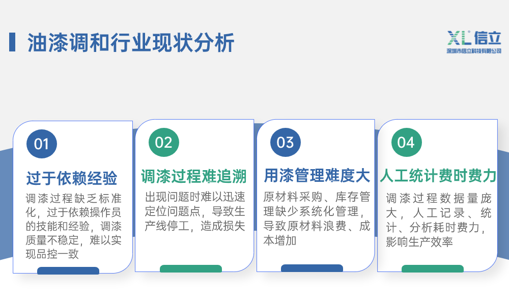信立科技涂裝油漆調和監(jiān)管系統(tǒng),實現(xiàn)油漆調和標準化、去經驗化