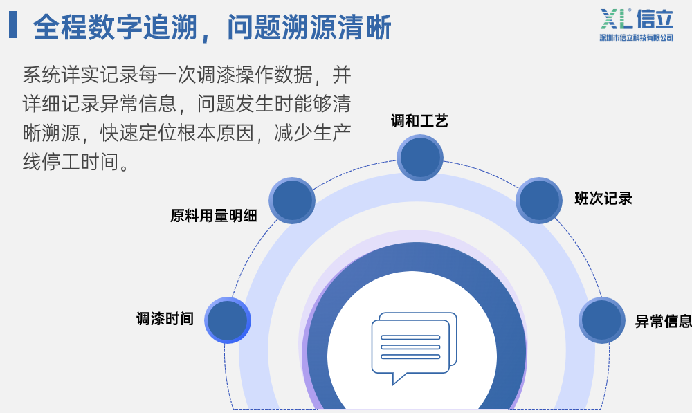 信立科技涂裝油漆調和監(jiān)管系統(tǒng),旨在通過數(shù)字化管理,將油漆調和作業(yè)過程標準化、去經驗化,有效解決因依賴人工經驗調漆導致的上述問題。