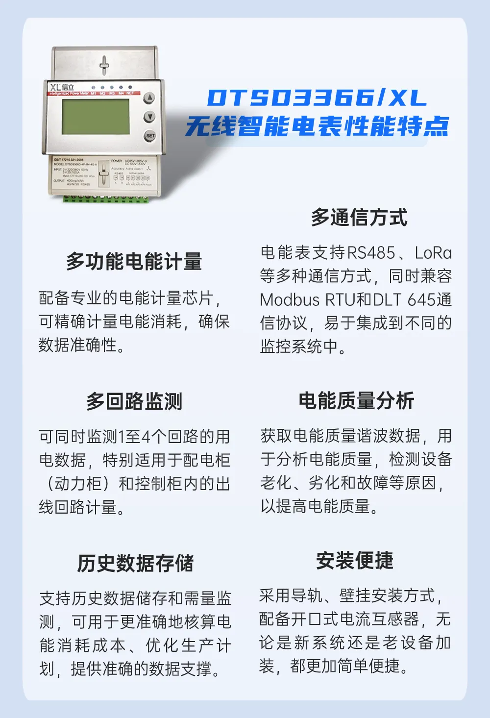 選擇DTSD3366D/XL系列三相電子式電能表,配置開環(huán)式電流互感器,不更改任何現(xiàn)有的電氣線路,采集各溫區(qū)電機(jī)的運(yùn)行電流,分析判斷電機(jī)過載、空載、斷線或是電機(jī)本體故障。
