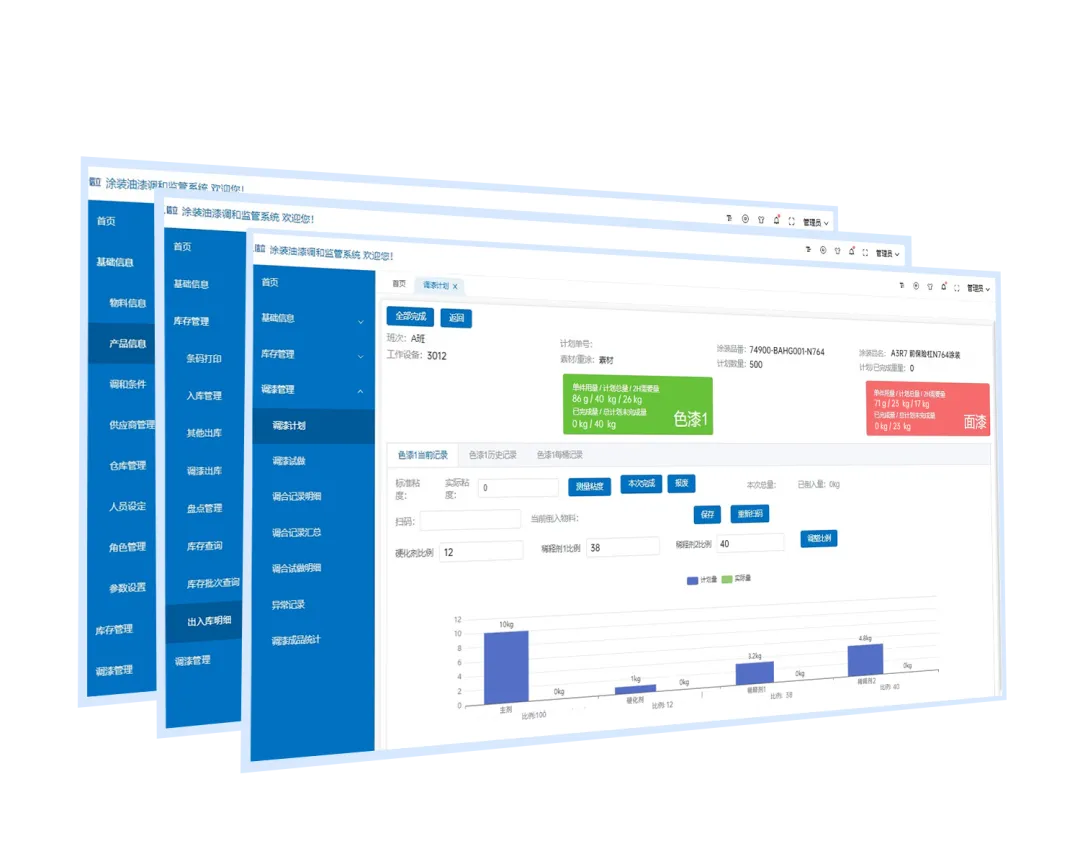 平臺自動記錄、生成用戶所需的各類報(bào)表,如調(diào)漆成品統(tǒng)計(jì)、庫存余料盤點(diǎn)等報(bào)表;