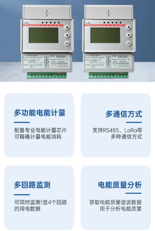 選擇DTSD3366XL無線多功能電表監(jiān)測各節(jié)點用電能耗情況。